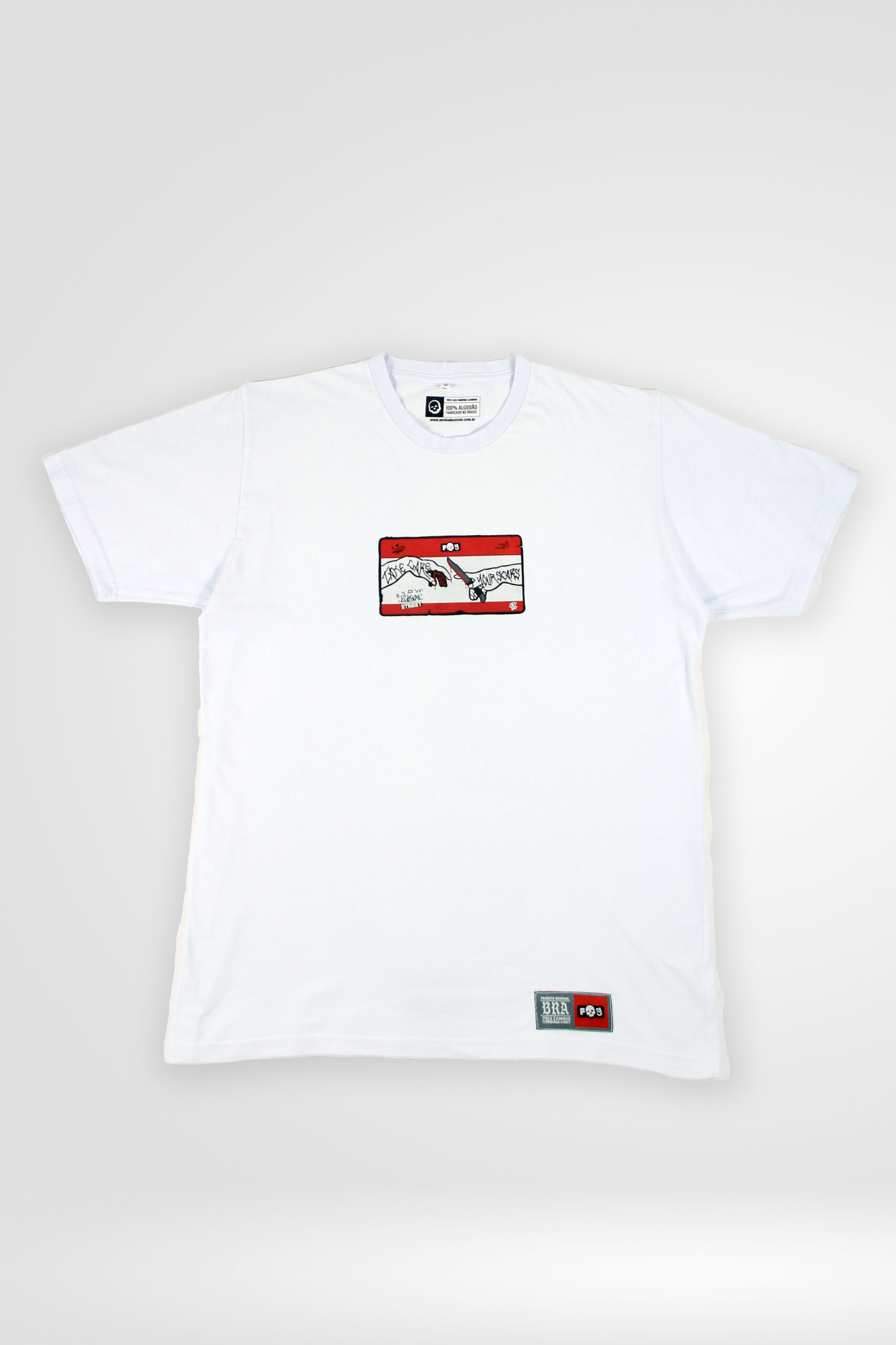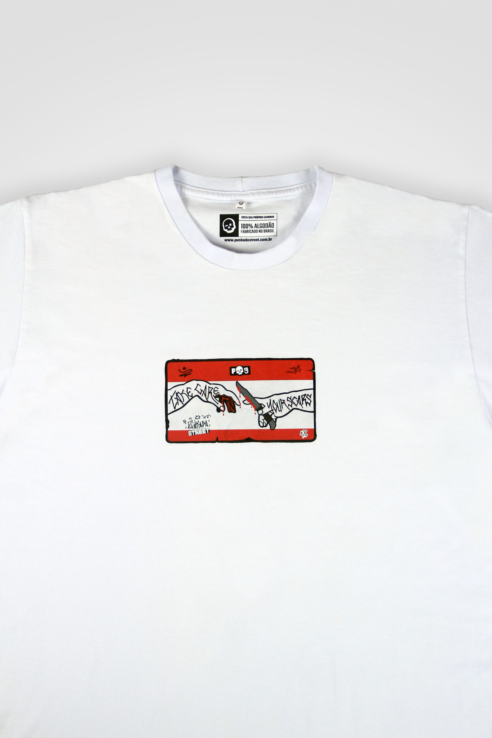 Camiseta “SCARS” branca, 100% algodão de alta qualidade, malha 30:1, com acabamento de sobregola e costura reforçada de ombro a ombro.